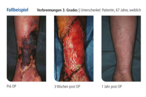 - Ein Spalthauttransplantat von 0,2 – 0,3 mm ist ausreichend, wodurch eine geringere Belastung an der Entnahmestelle erreicht wird.